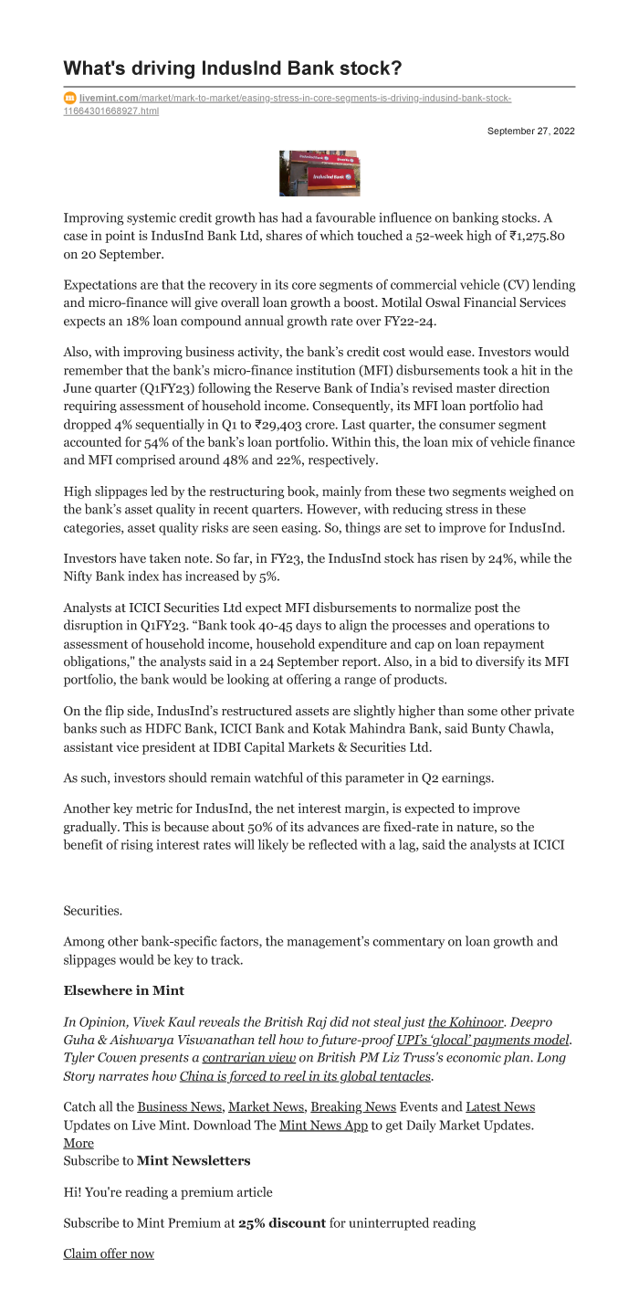 What's driving IndusInd Bank stock?: