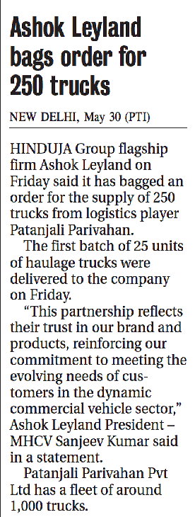Mr. Sanjeev Kumar, President – MHCV, Ashok Leyland said, “We are thrilled to deliver the first batch of 1916 haulage trucks to Patanjali Parivahan Private Ltd. This partnership reflects their trust in our brand and products, reinforcing our commitment to meeting the evolving needs of customers in the dynamic commercial vehicle sector. Our relationship with Patanjali began in 2014 with the addition of 20 trucks, marking the foundation of a strong and growing collaboration. As Ashok Leyland continues to expand and lead in the commercial vehicle industry, collaborations like these pave the way for a more efficient and progressive logistics sector. The company remains committed to pushing the boundaries of innovation and offering cutting-edge technologies and outstanding customer experience.”