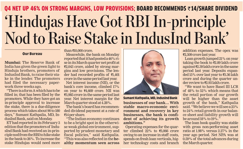 Hindujas have got RBI in-principle nod to raise stake in IndusInd Bank